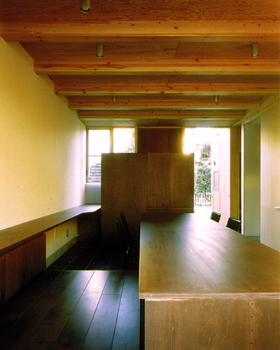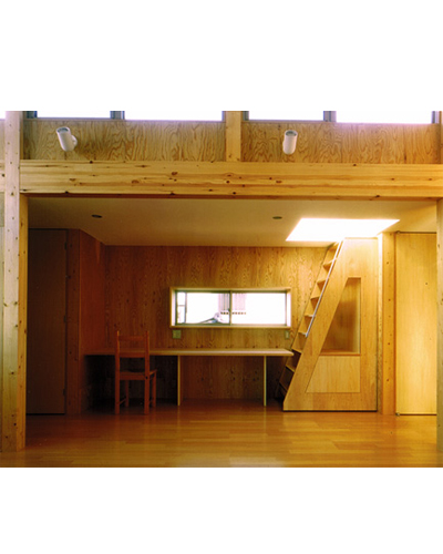 このS邸は、東京郊外のゆったりとした住宅地の一区画が 切売りされて出来た奥行きの深い敷地に立つ。 従来の街並みやゆとり感を保ちながら必要な容積を確保する住宅を提案した。 敷地の前後に庭を持ち、それらを取り込むフリースペースと、 住宅として必要な機能を納めたコアの組み合わせによる住宅である。 1階に家具の移動により使い方を変える居間・食堂、 2階に家具によって間仕切る個室を持つ。 様々な家族構成や敷地条件に対応できるこの提案は、 規格住宅のプロトタイプになりうるのではないかと考え、 同時に進行していた都内を中心に展開する建売住宅の群棟計画に応用した。 企画・販売も含めた魅力ある商品としての建売住宅を提案している。 共同設計者 田中幸子/openvision 構造設計者 腰原幹雄/木構造研究所 > 平面図 > 構造図